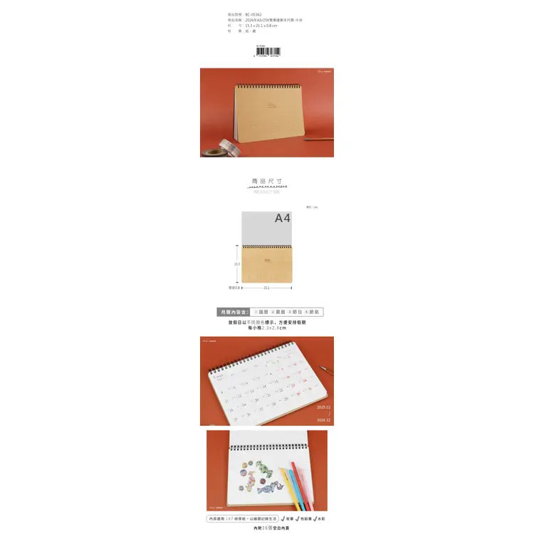 (特價)2026年25K雙圈繪圖本月曆-牛皮