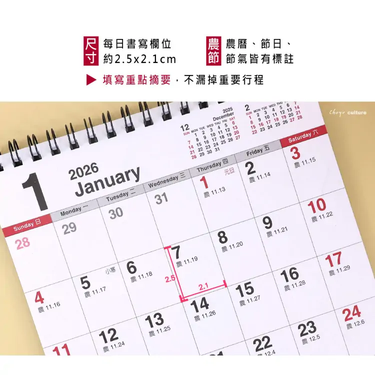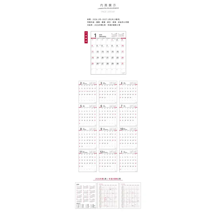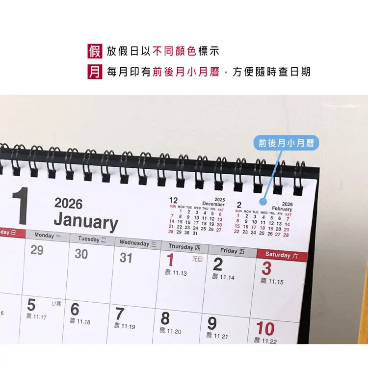 - 月曆內容:國曆、農曆、節日、節氣、前後月月曆
