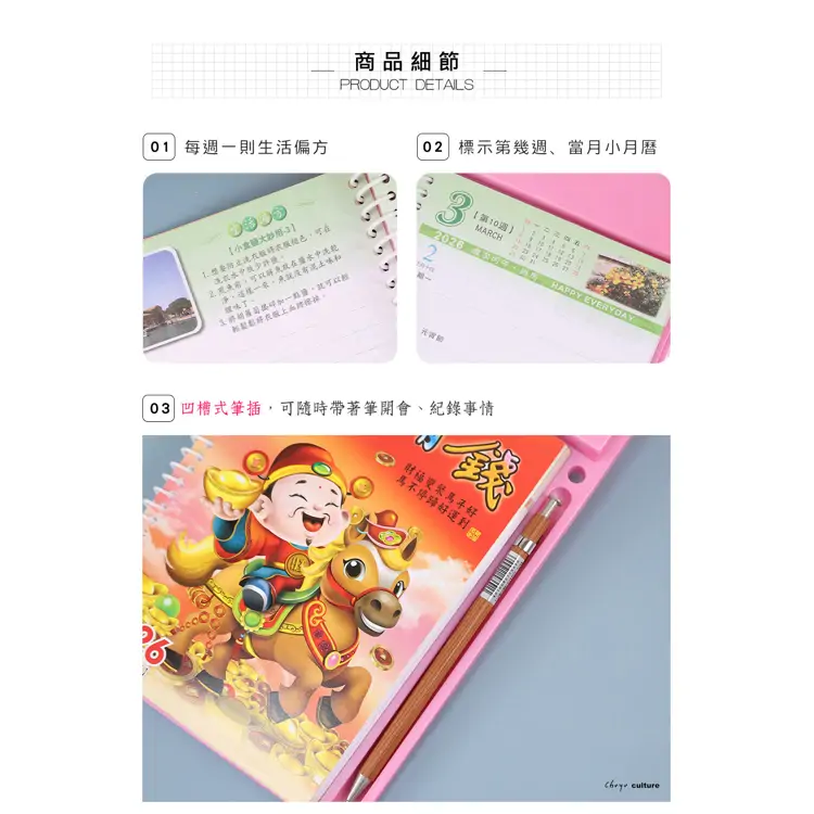 - 桌上型週曆,隨時掌握、紀錄事項