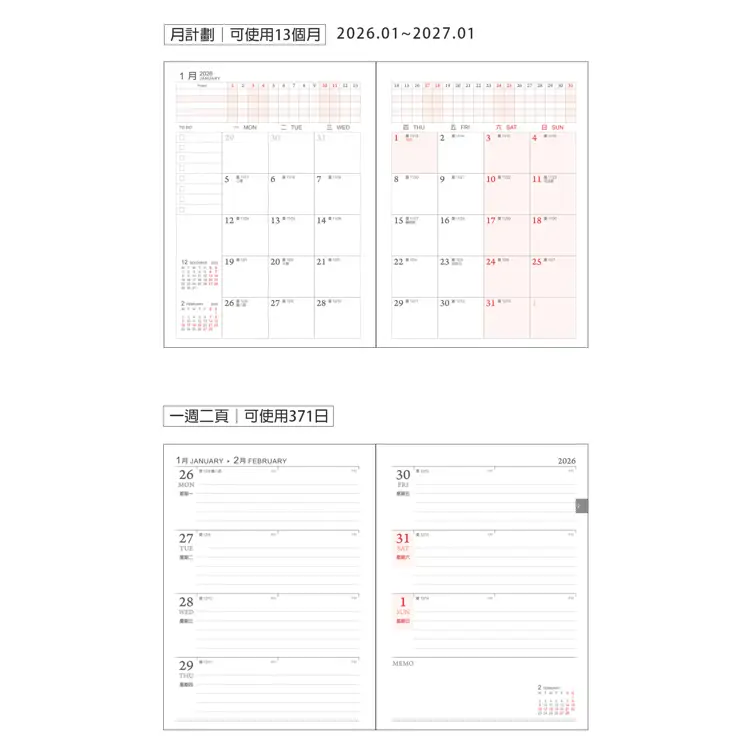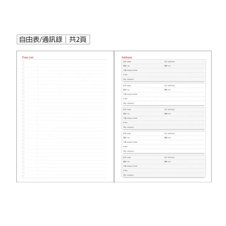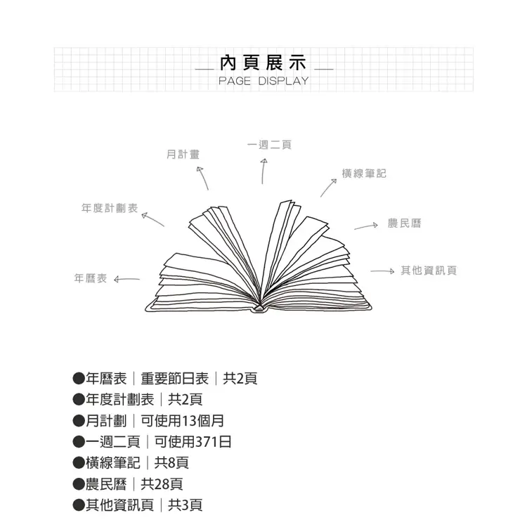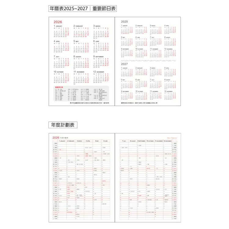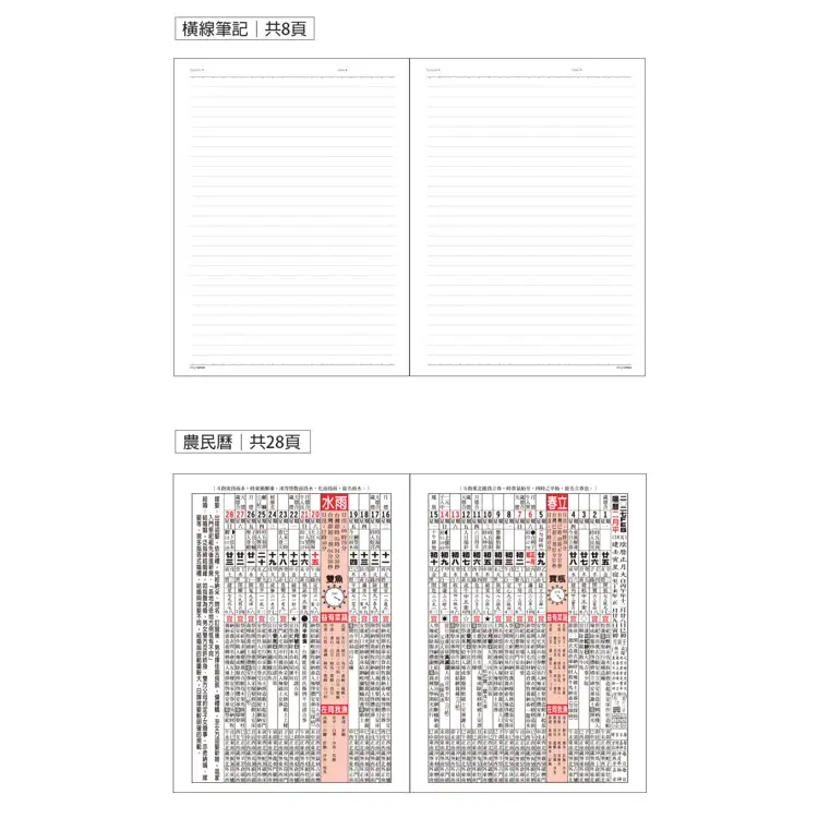 - 內容:年度計劃表│月計劃│橫線筆記│農民曆