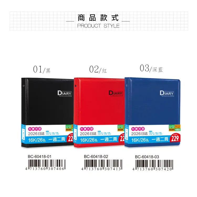 (特價)2026年16K/26孔日誌/1週2頁-深藍