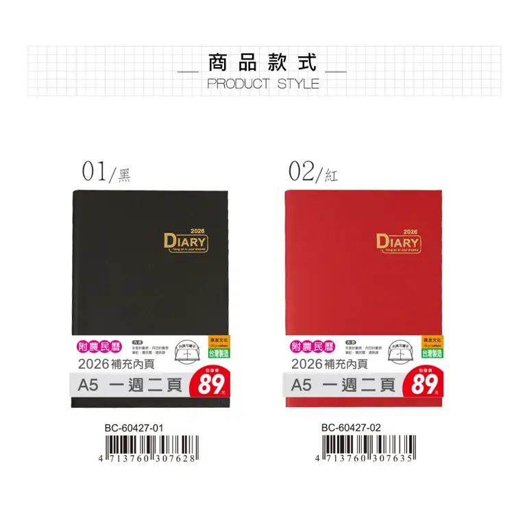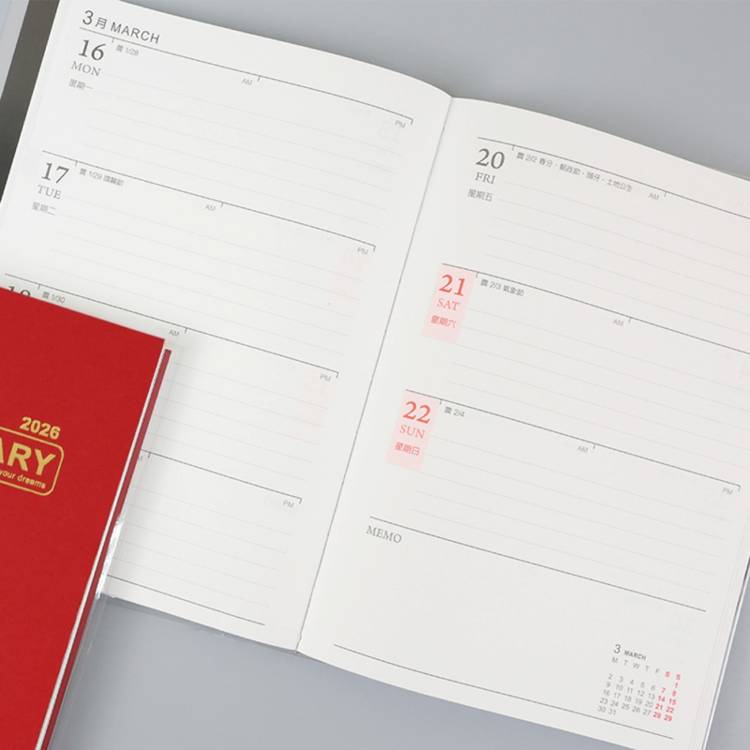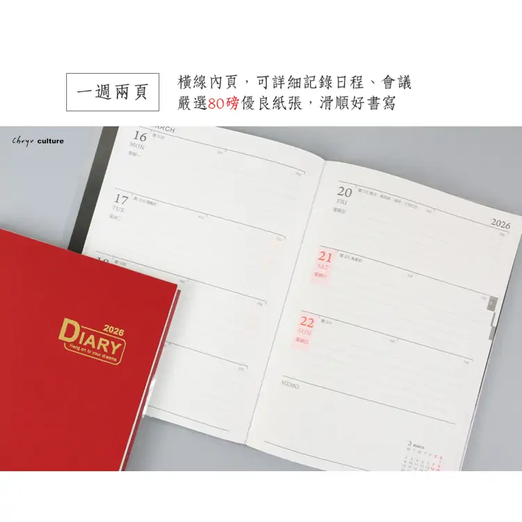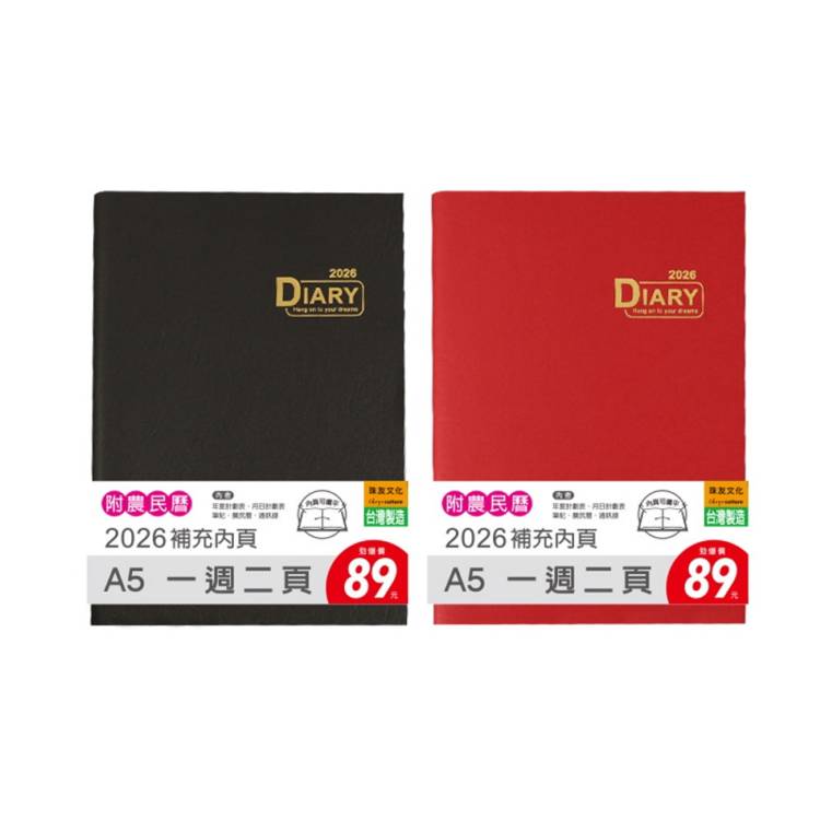 (特價)2026年A5日誌內頁/1週2頁-紅