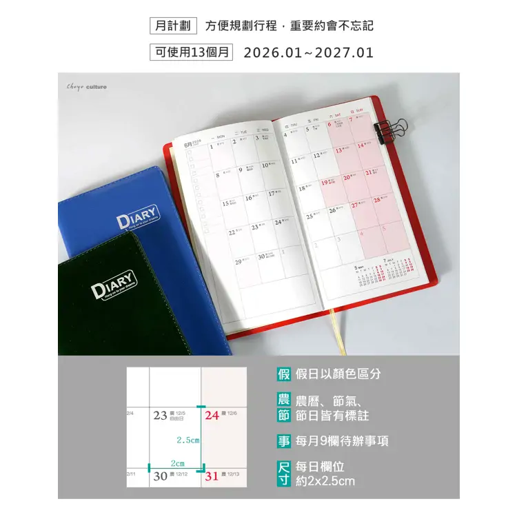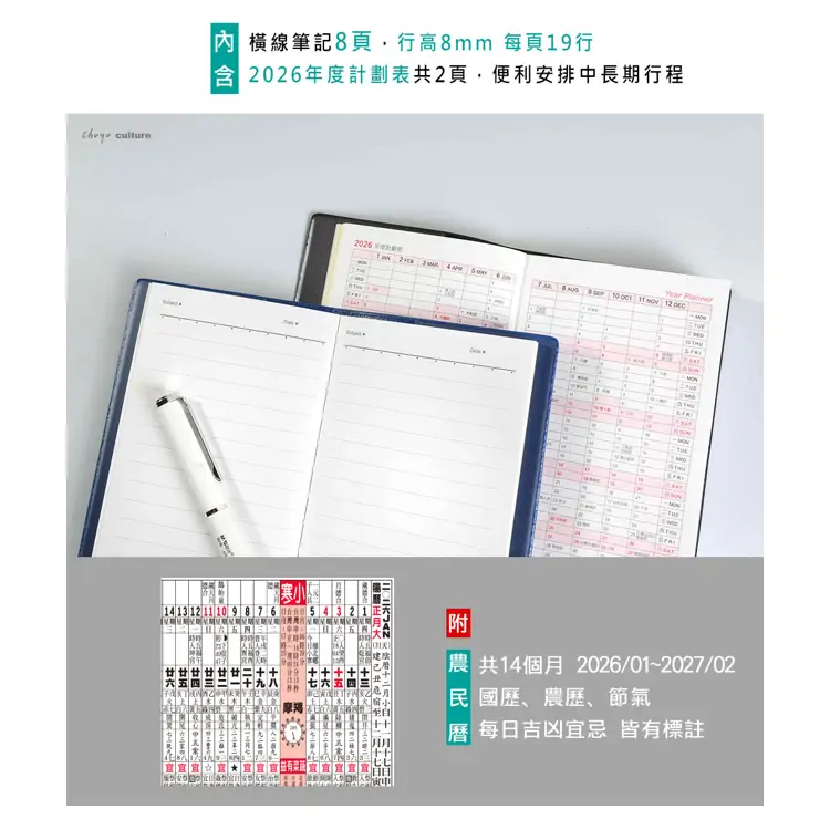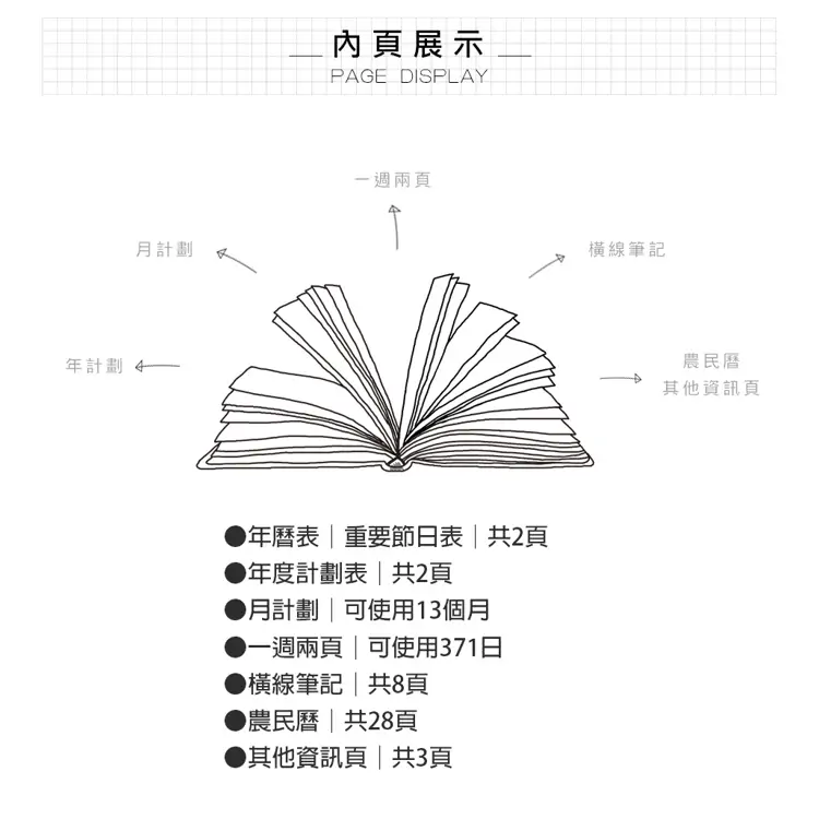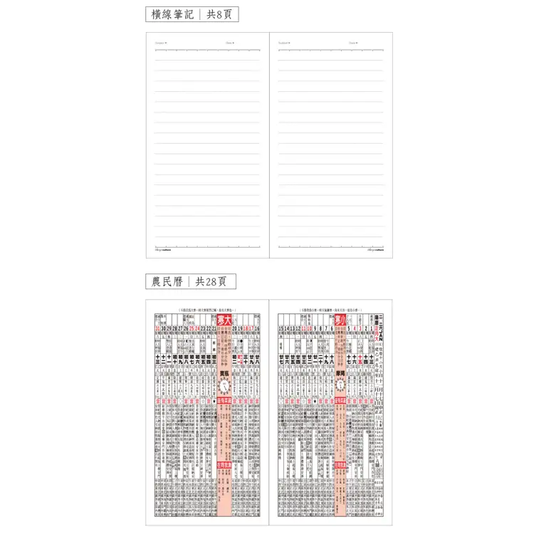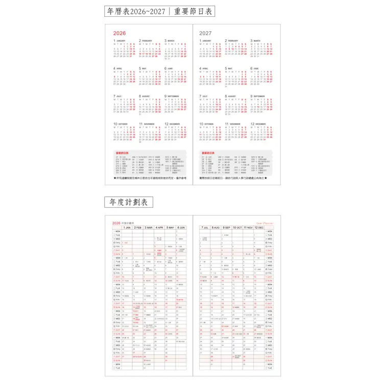 - 內容:年度計劃表│月計劃│週計劃│農民曆