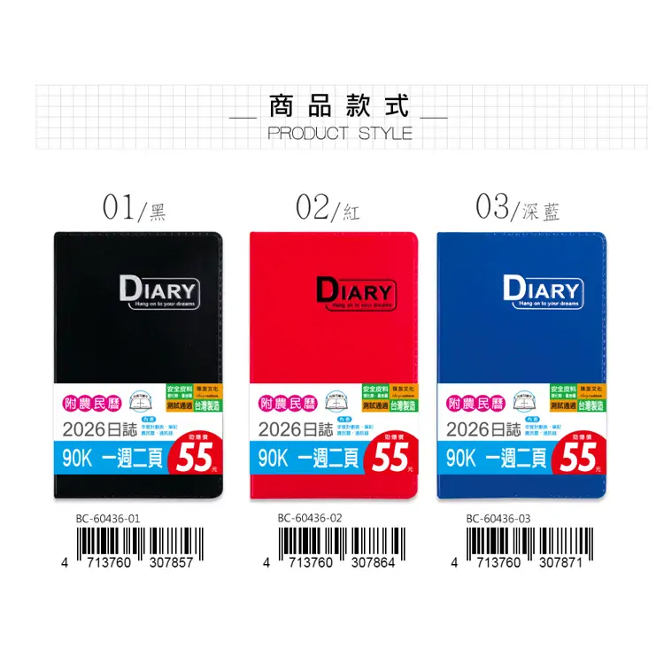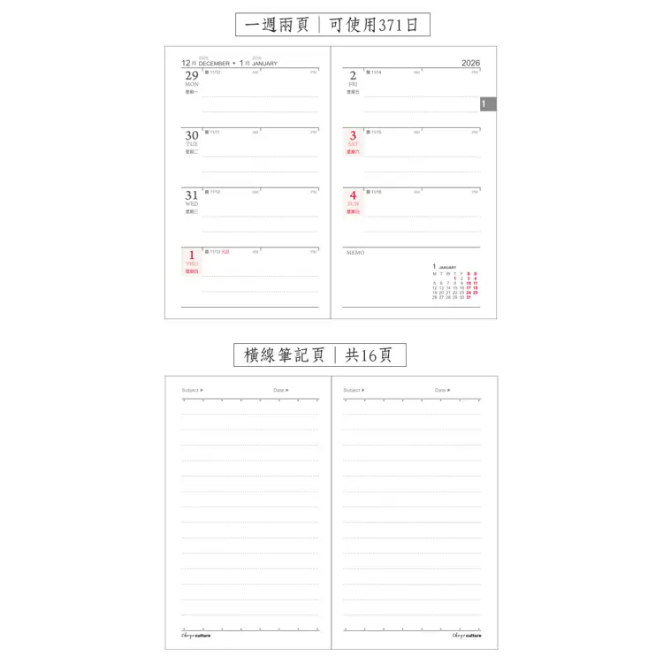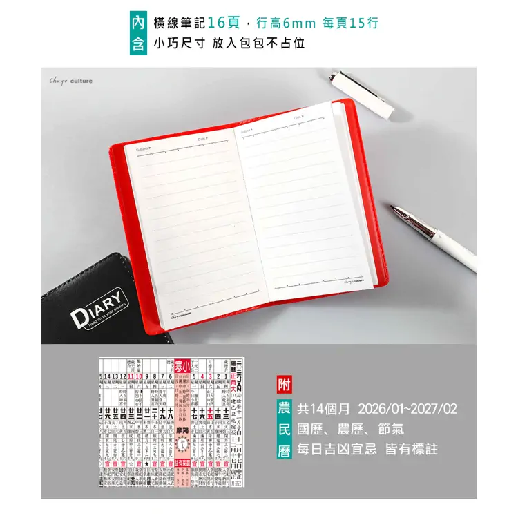 (特價)2026年90K年度日誌/1週2頁-紅