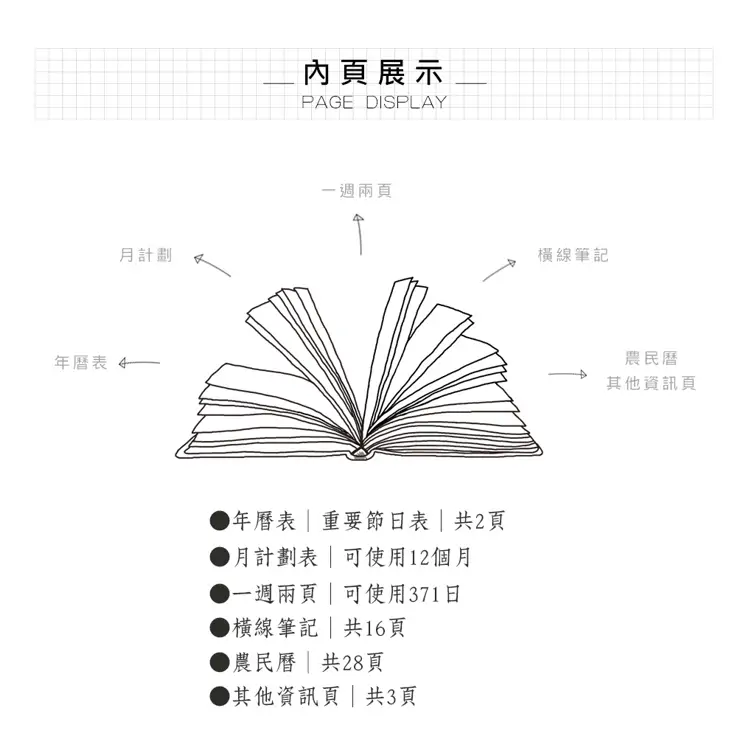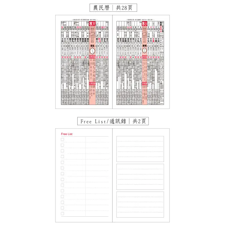 - 內容:年曆表│月計劃│週計劃│農民曆