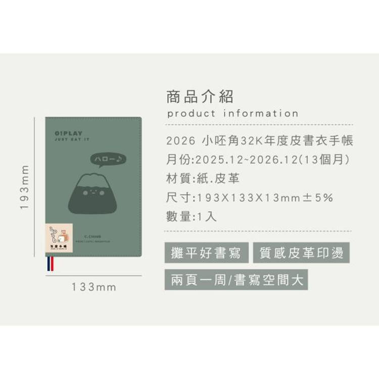 ◎「小呸角系列」- 2026 32K年度皮書衣手帳/CDM-433