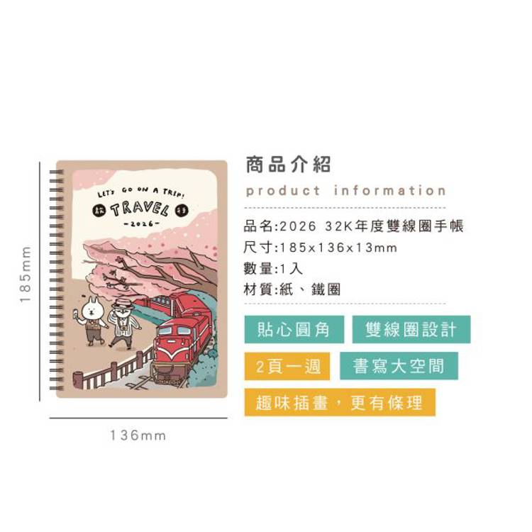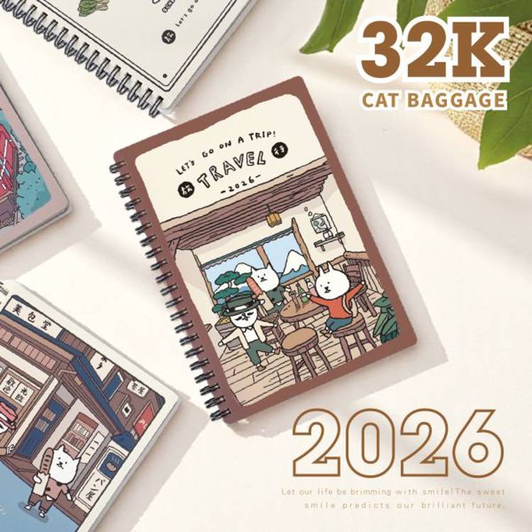 ◎「貓行李系列」- 2026 32K年度雙線圈手帳/CDM-435