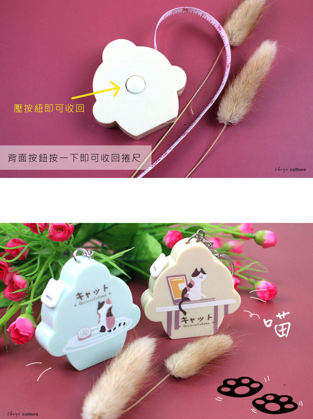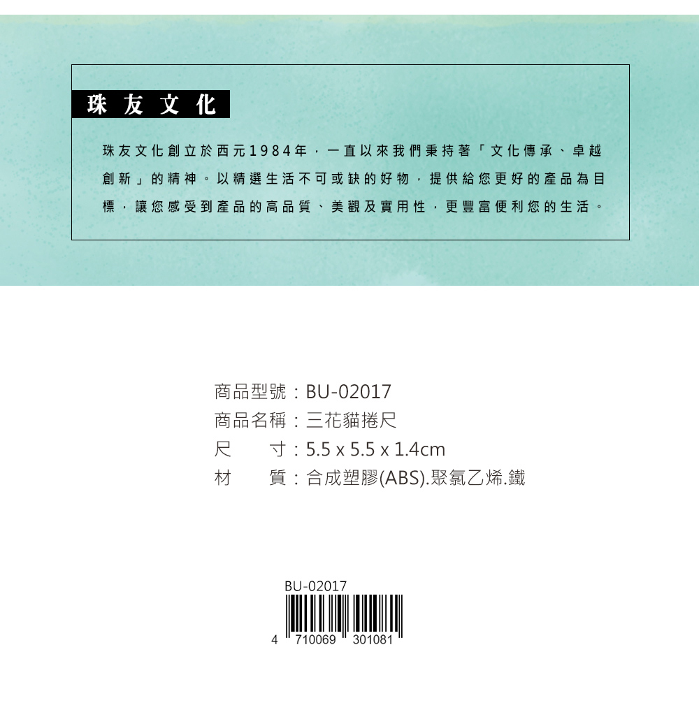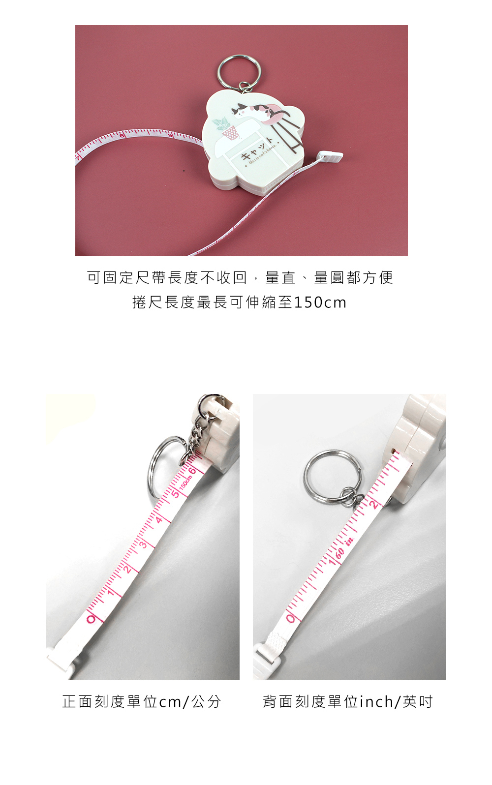 - 雙單位尺帶,正面為公分、反面為英吋
