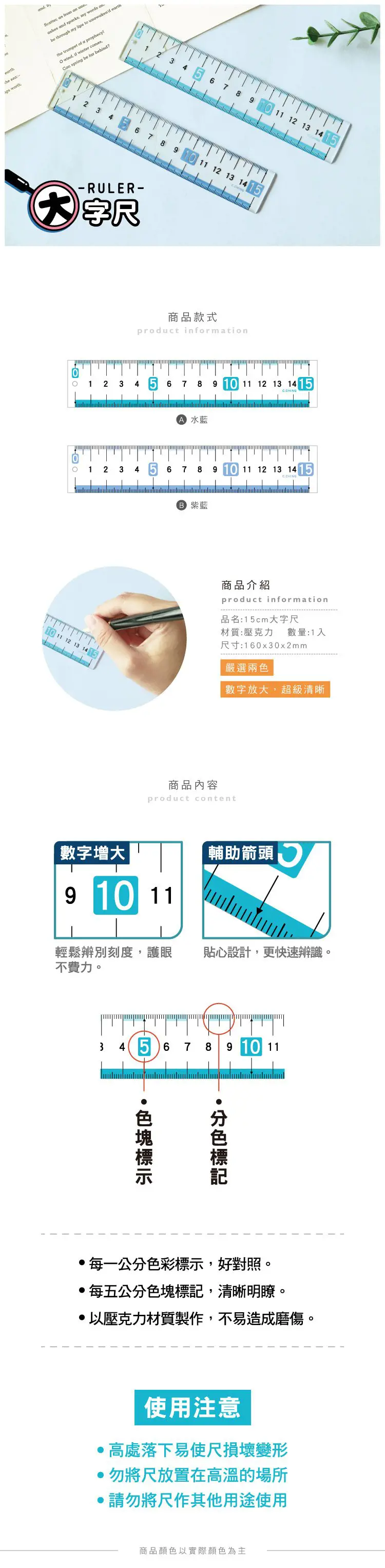 1. 青青 簡單生活系列 CR-147 15cm大字尺(160x30x2mm)