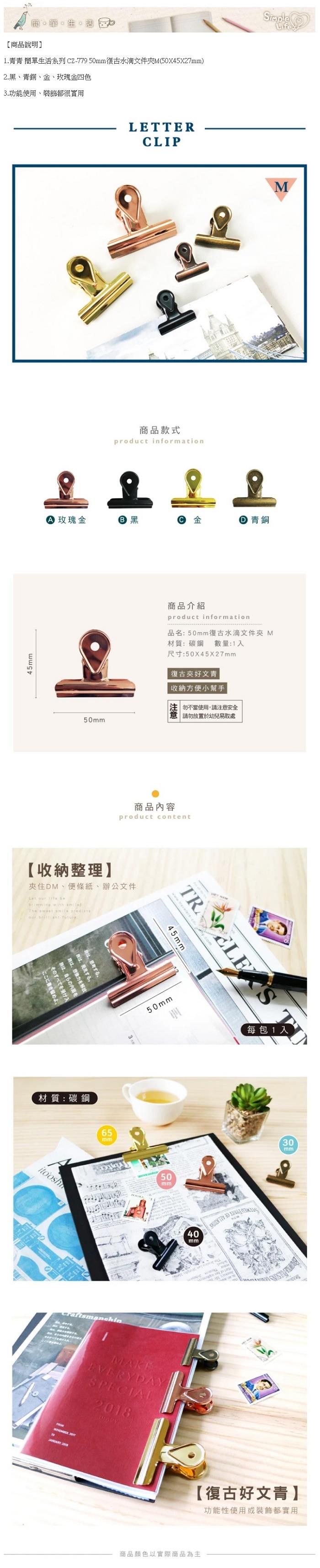 ◎青青 簡單生活系列 CZ-779 50mm復古水滴文件夾M(50X45X27mm)