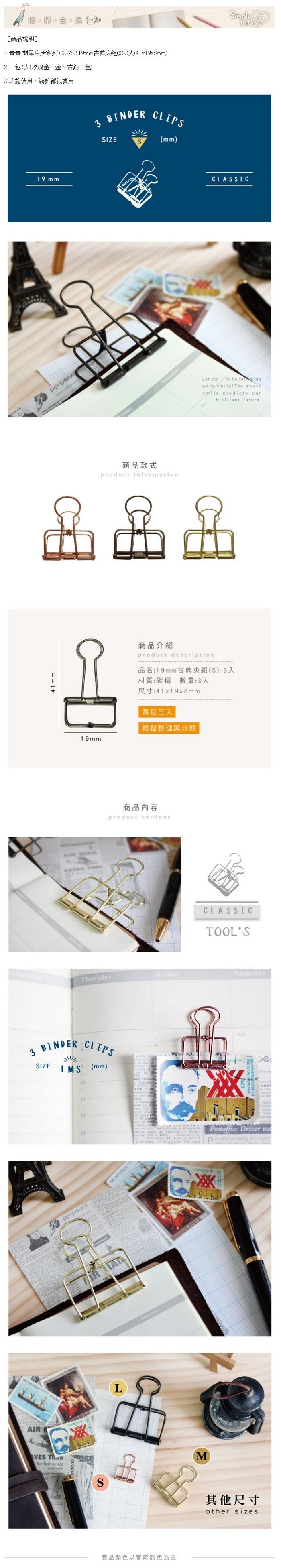 ◎青青 簡單生活系列 CZ-782 19mm古典夾組(S)-3入(41x19x8mm)