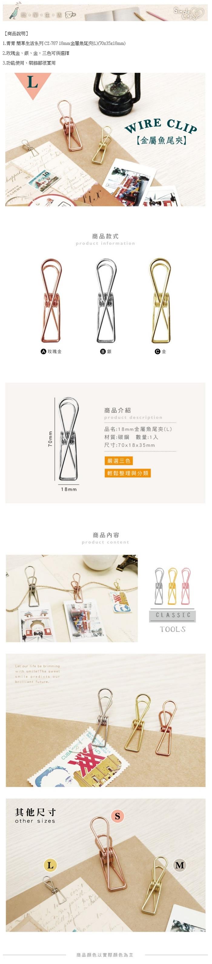 ◎青青 簡單生活系列 CZ-787 18mm金屬魚尾夾(L)(70x35x18mm)