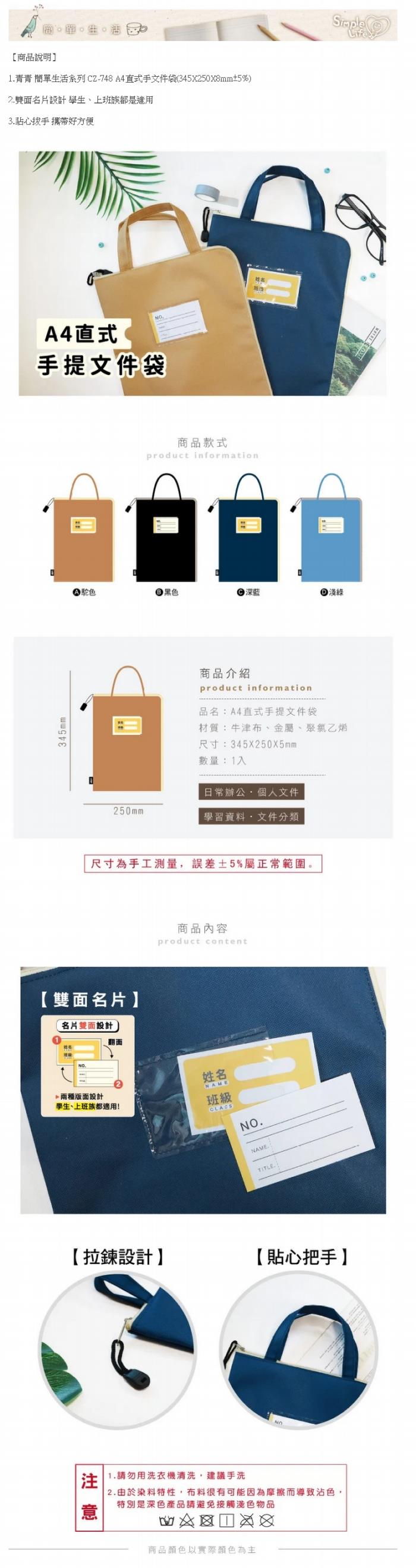 ◎青青 簡單生活系列 CZ-748 A4直式手文件袋(345X250X8mm±5%)