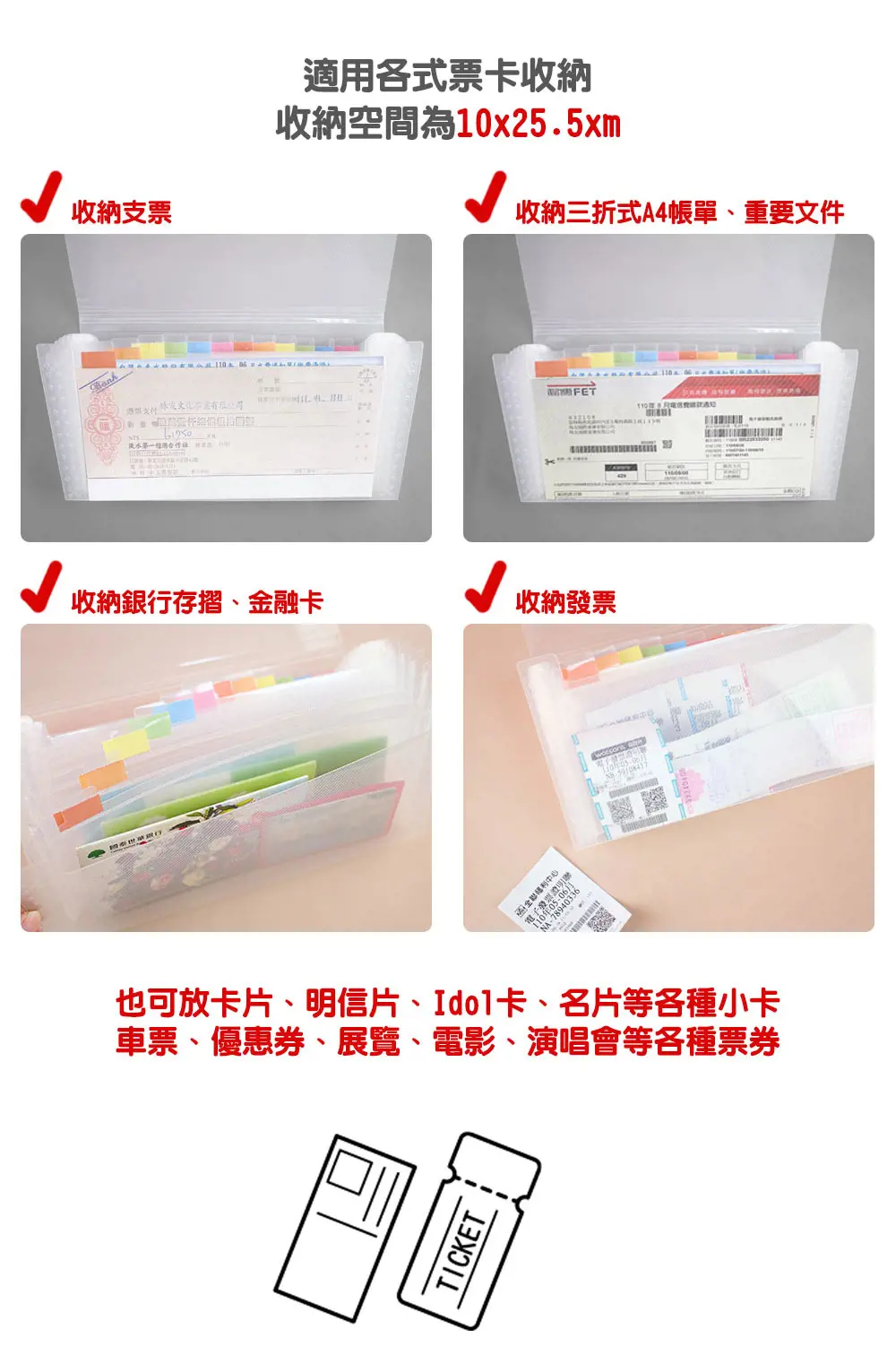 - 可收納各式票卡