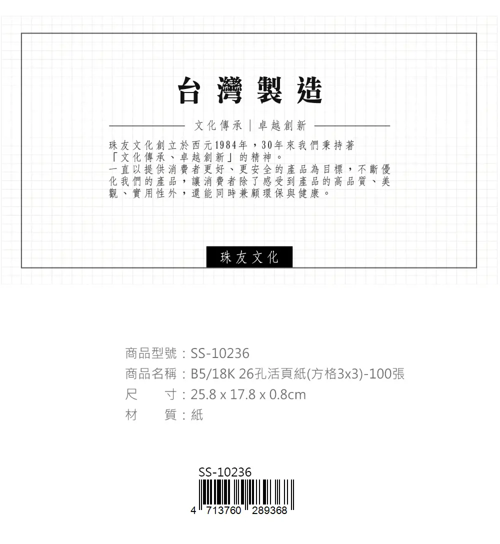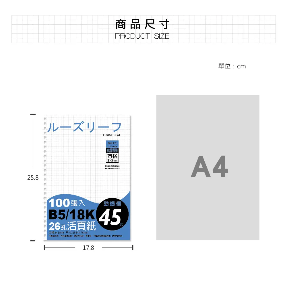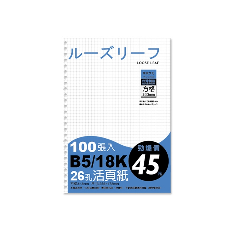 (特價)特價B5 26孔活頁紙(方格3*3)