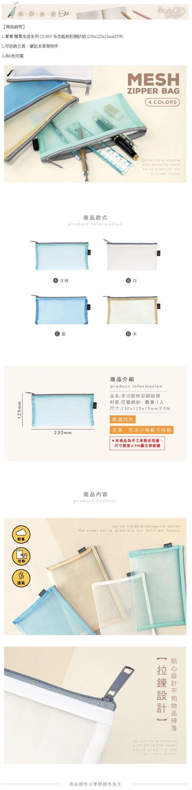 ◎青青 簡單生活系列 CZ-869 多功能粉彩網紗袋 (230x125x15mm±5%)