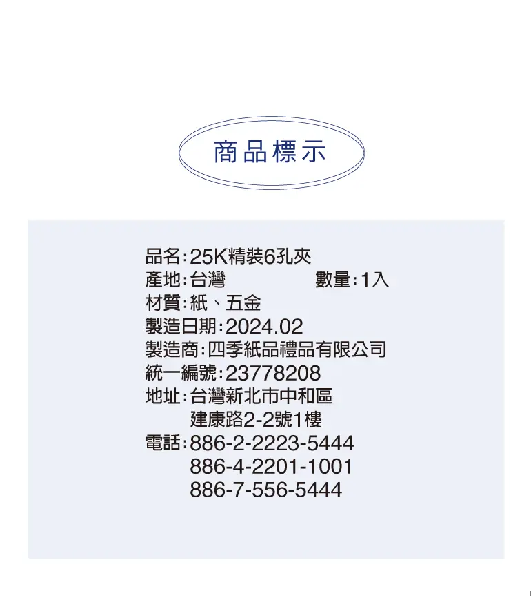 • 材質:紙、五金