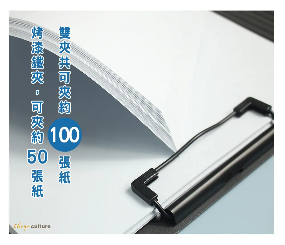 - 烤漆鐵夾,單夾可夾約50張紙;雙夾可夾共100張A4紙