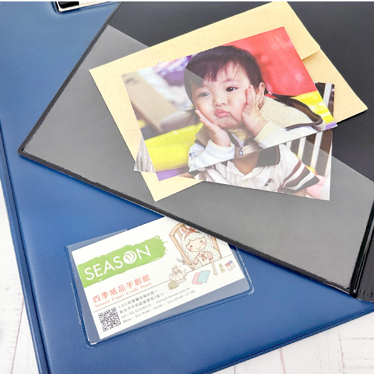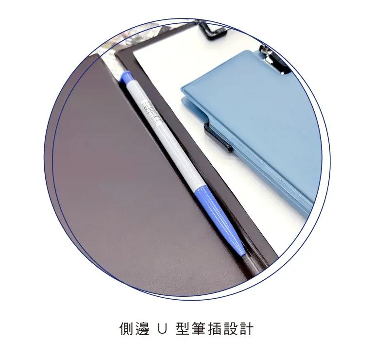 § 封面可放置名片,封面裡附收納袋,側邊U型筆插。