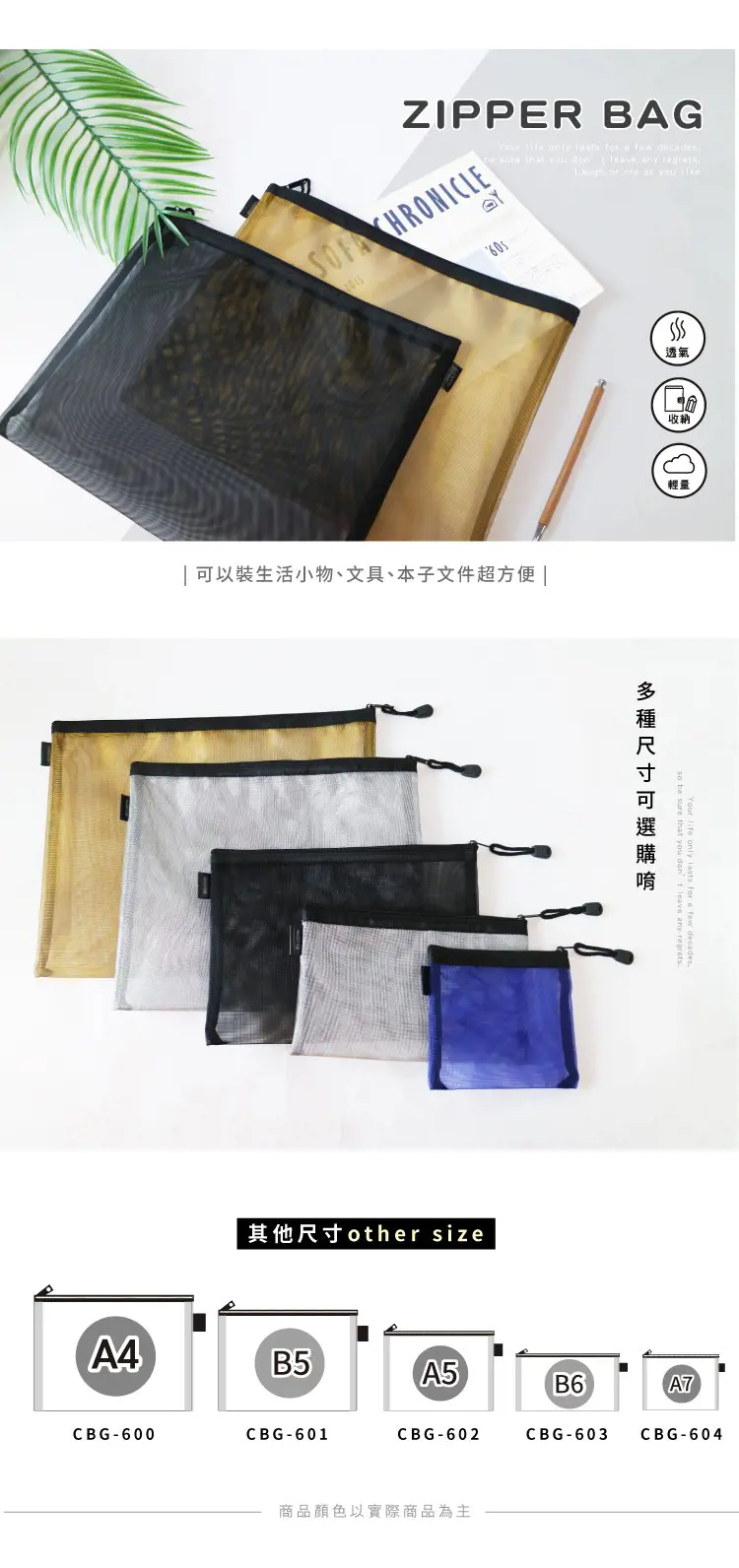 1.青青 簡單生活系列 CBG-601 B5金屬尼龍拉鍊袋(290x210x5mm±5%)