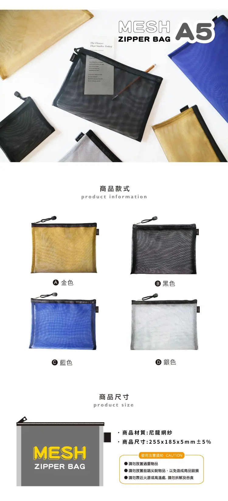 1.青青 簡單生活系列 CBG-602 A5金屬尼龍拉鍊袋(255x185x5mm±5%)