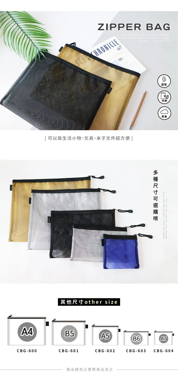 1.青青 簡單生活系列 CBG-602 A5金屬尼龍拉鍊袋(255x185x5mm±5%)