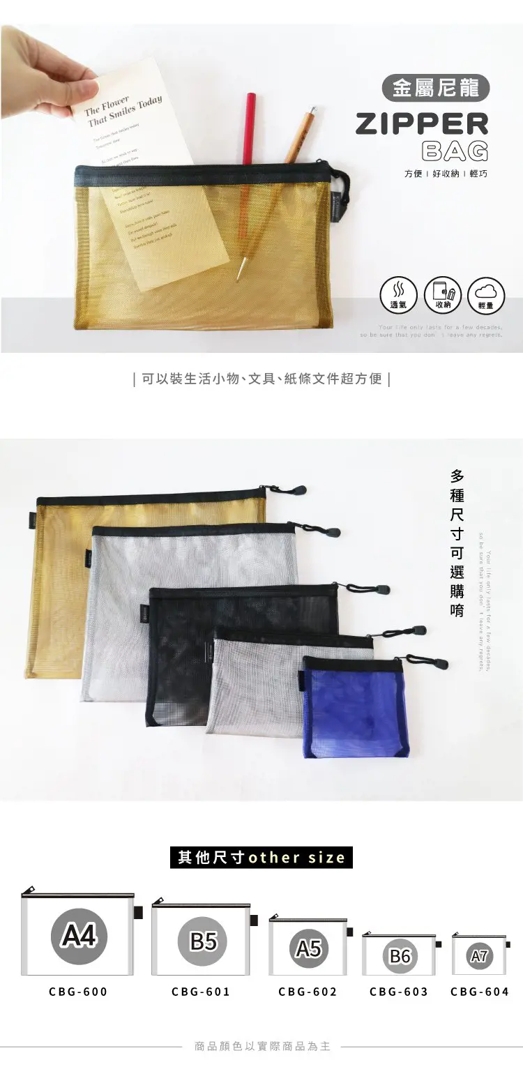1.青青 簡單生活系列 CBG-603 B6金屬尼龍拉鍊袋(215x135x5mm±5%)