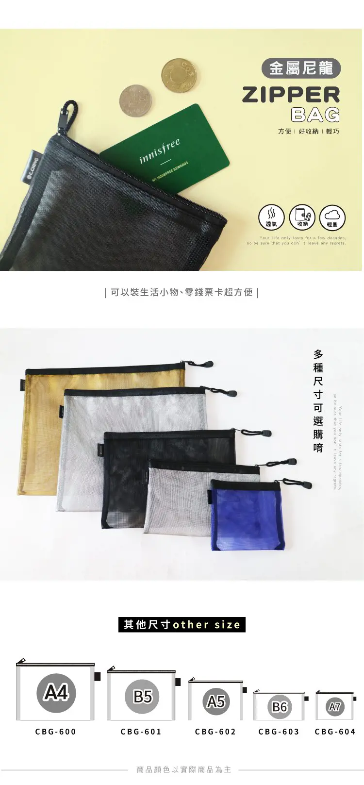 1.青青 簡單生活系列 CBG-604 A7金屬尼龍拉鍊袋(140x125x5mm±5%)