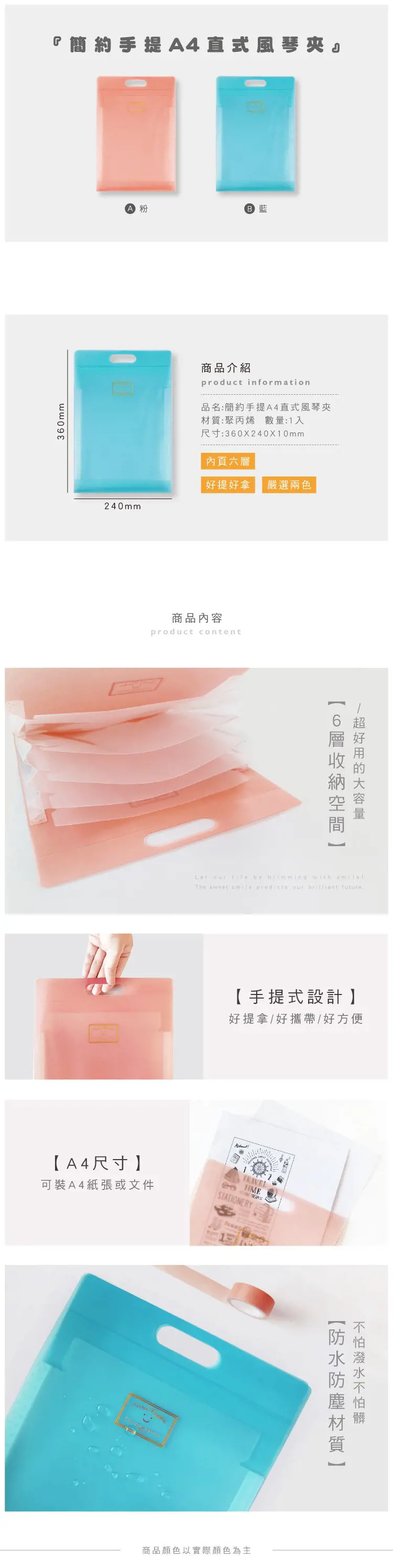 1. 青青 簡單生活系列 CZ-926 簡約手提A4直式風琴夾(360x240x10mm)