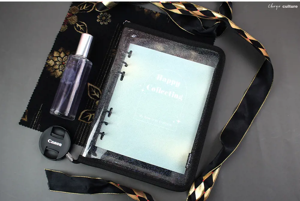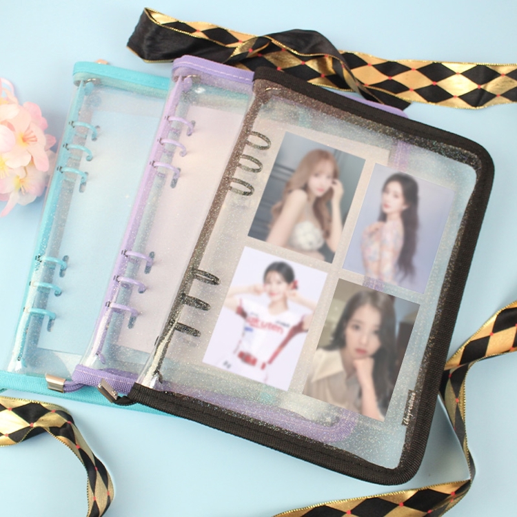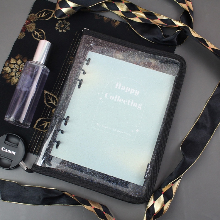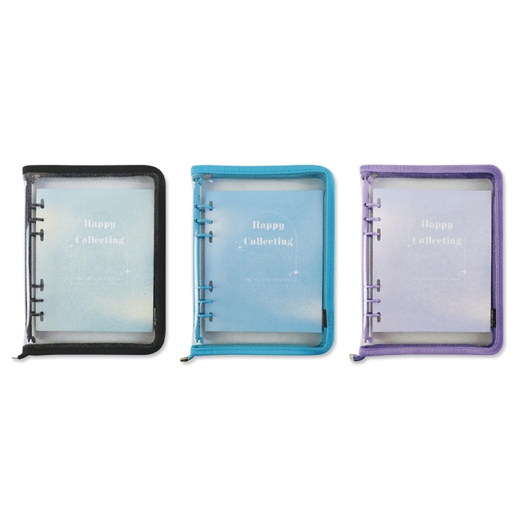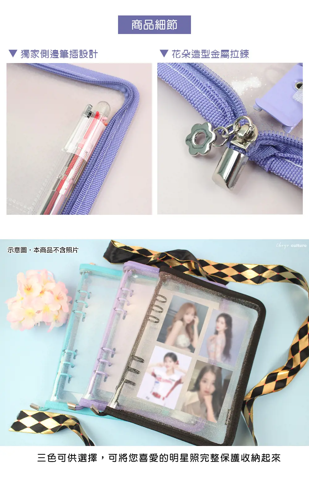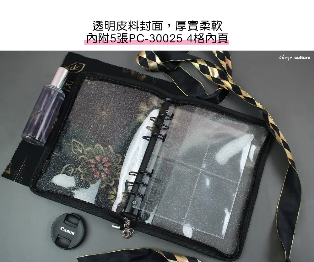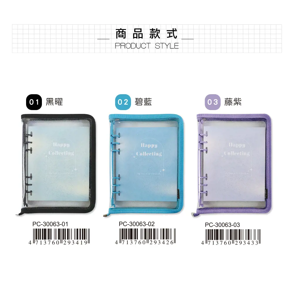 (特價)A5 6孔拉鍊包明星.遊戲卡冊黑曜