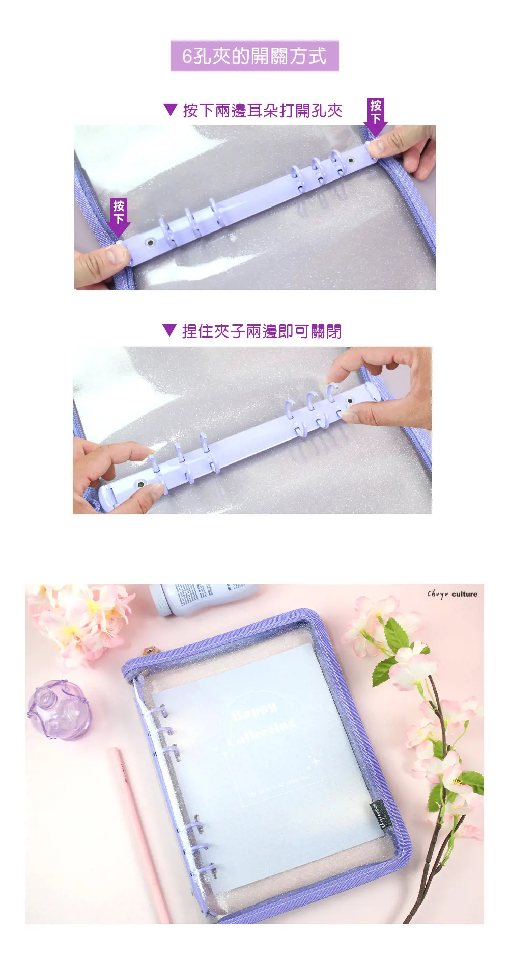 • 拉鍊包邊+6孔鐵夾,美觀實用