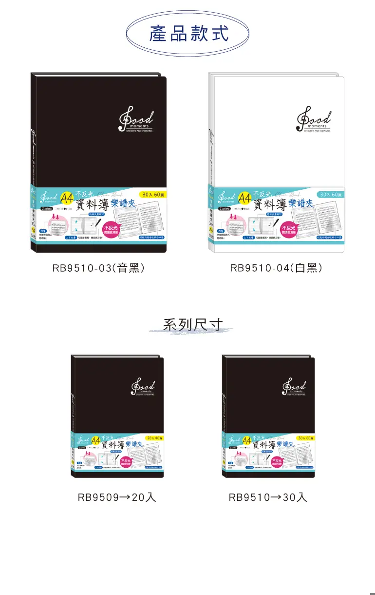 A4不反光資料簿30入-音黑