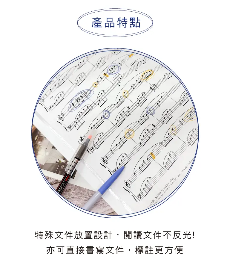 § 特殊文件放置設計,閱讀文件不反光。