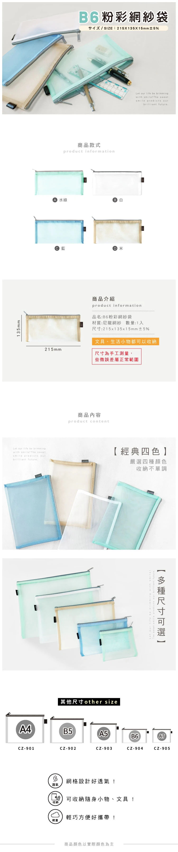 1.青青 簡單生活系列 CZ-712 B6粉彩網紗袋 (215x135x15mm±5%)