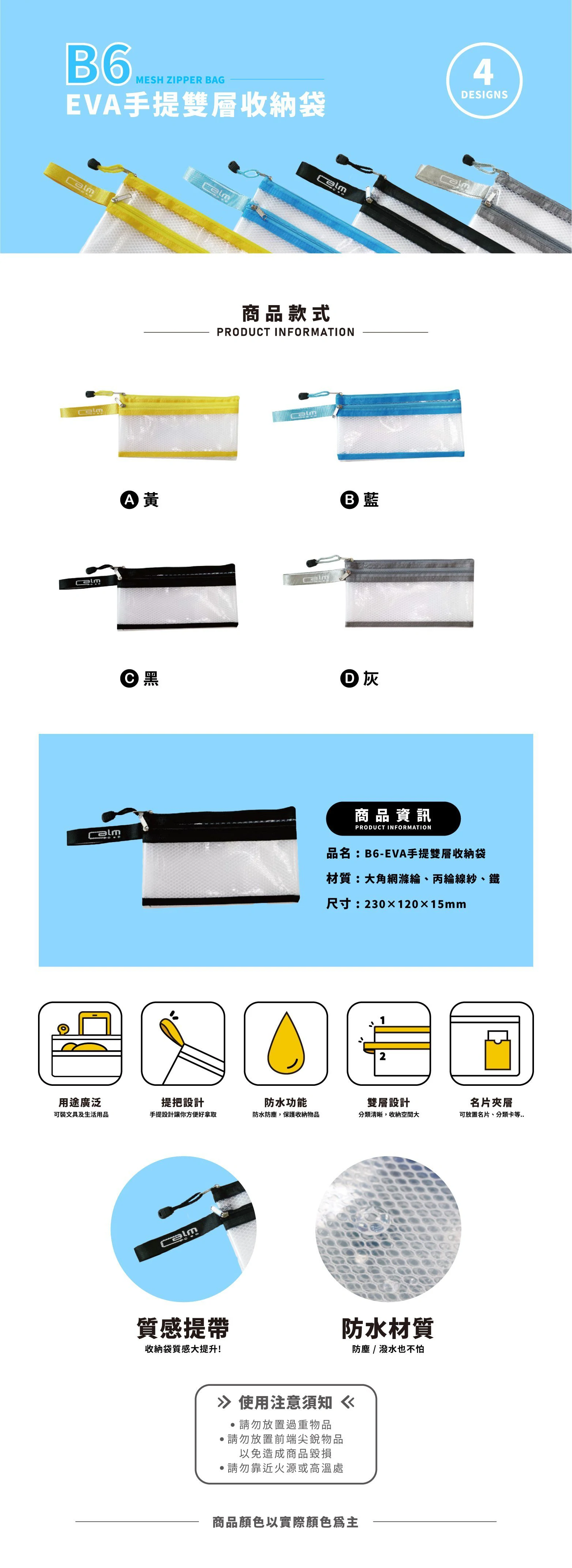 1.青青 Calm系列 CBG-618 B6-EVA手提雙層收納袋 (230x120x15mm)