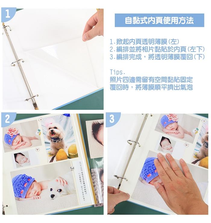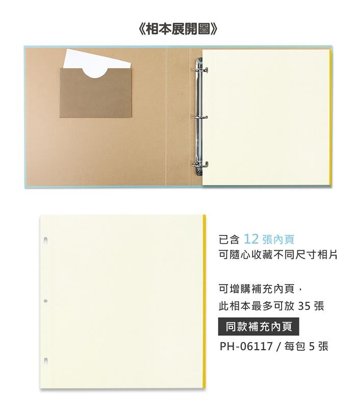 ・加大活頁夾,內頁可自行增減,最多可放35張自黏內頁