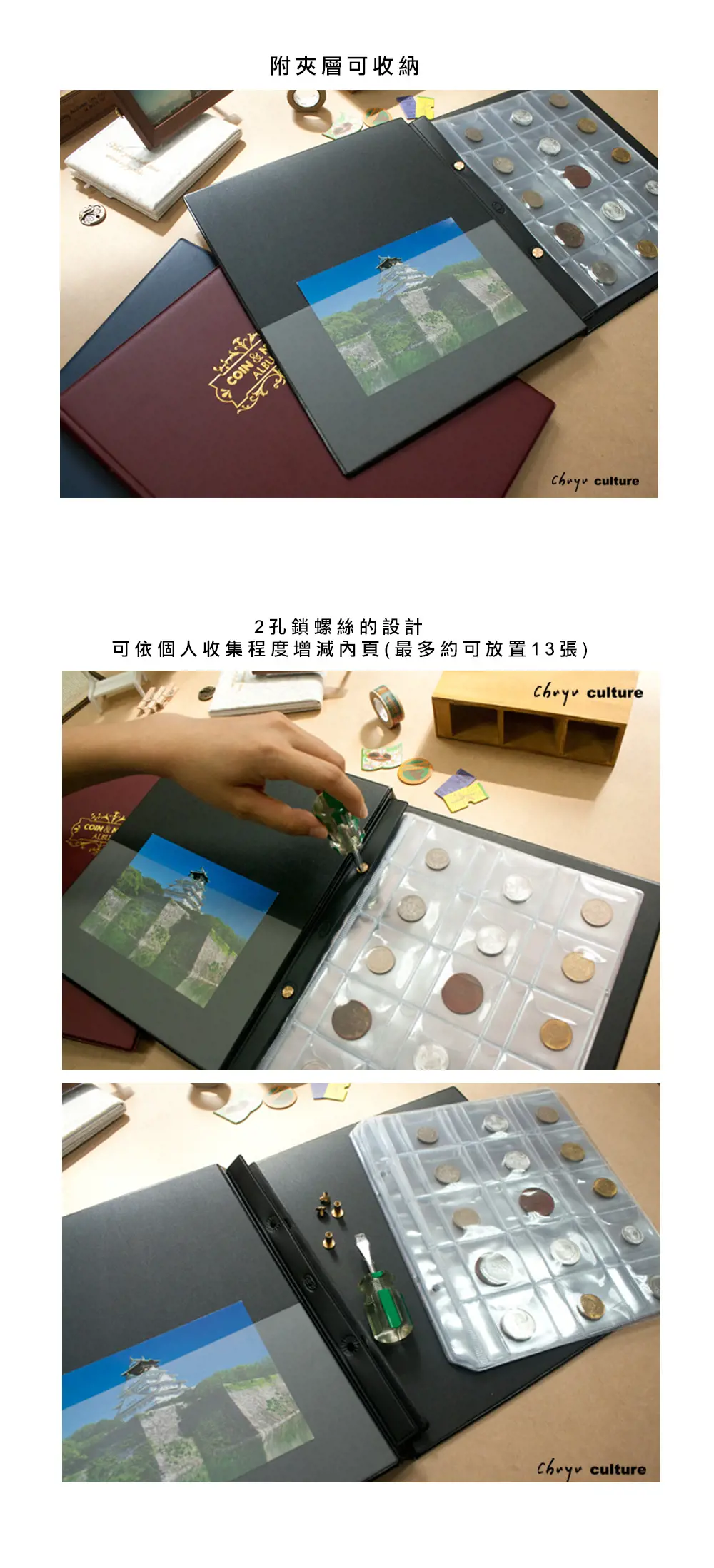 - 內頁最多可約放置13張