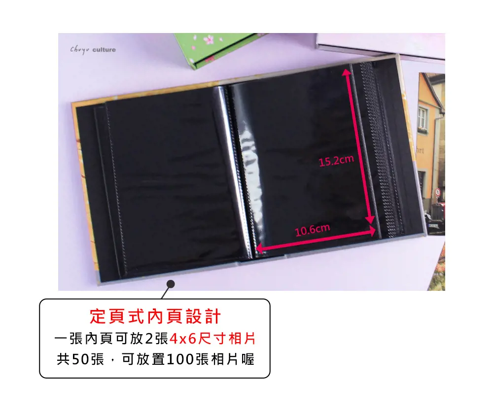 - 內頁上方開口,相片放入更順暢