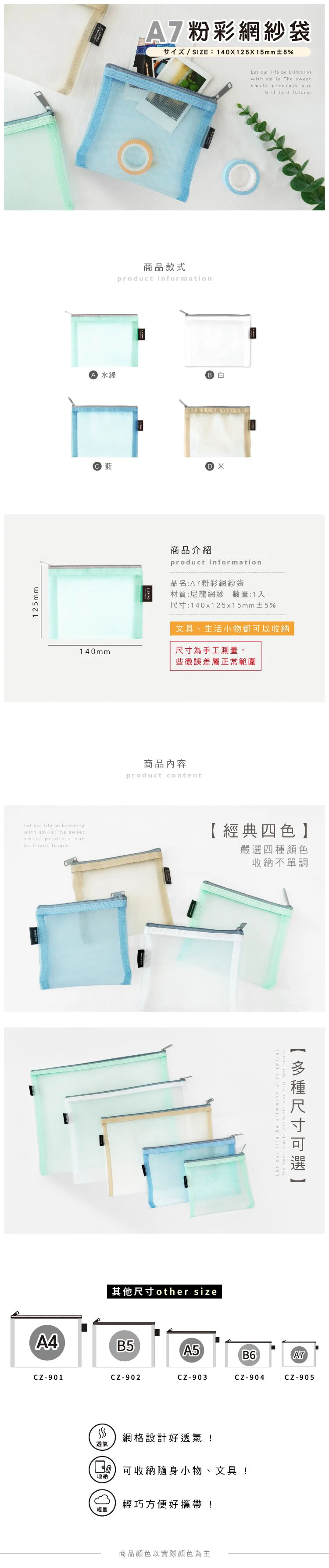 1.青青 簡單生活系列 CZ-905 A7粉彩網紗袋(140x125x15mm±5%)