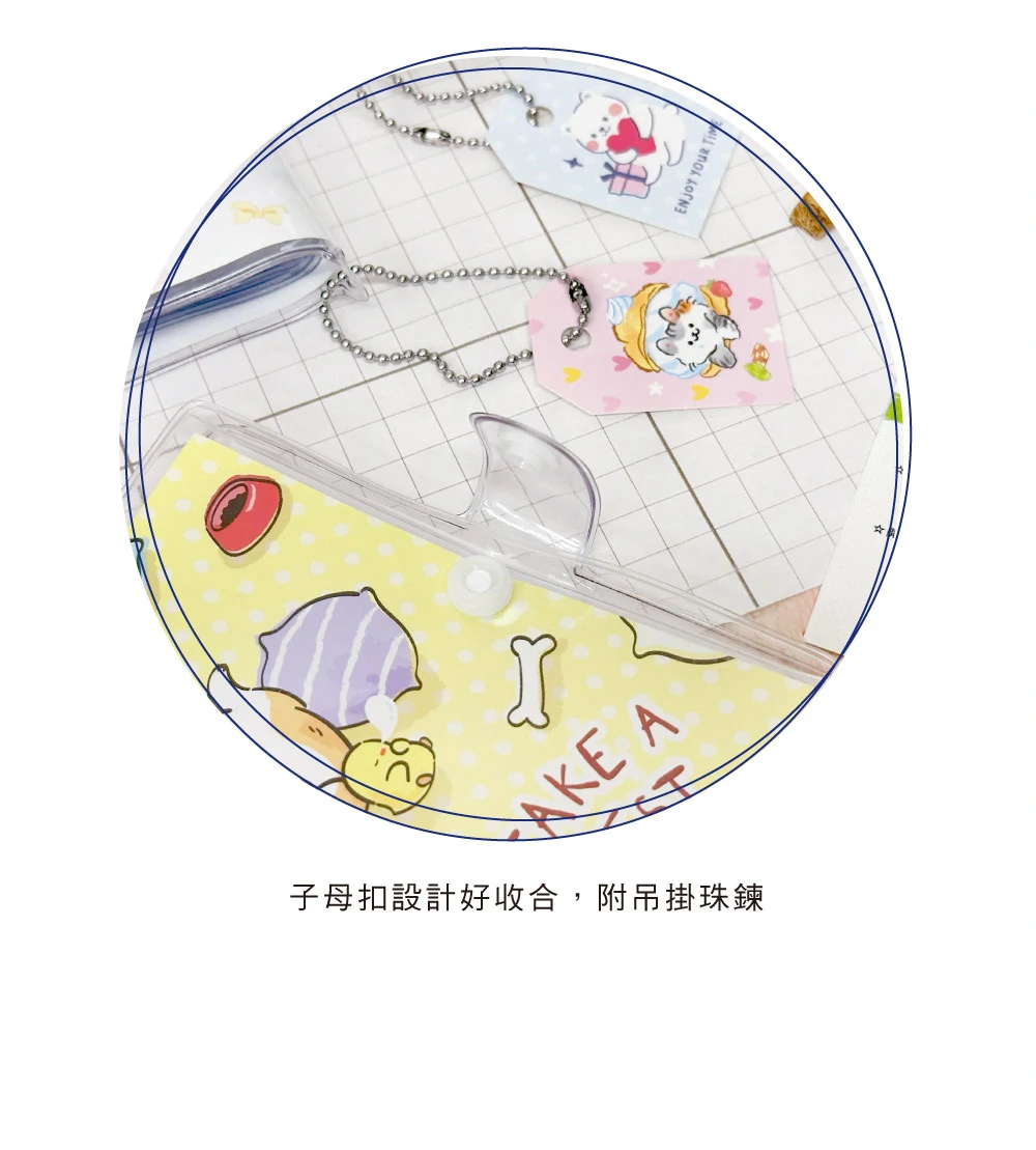 § 輕便好攜帶,子母扣好收合,附吊掛珠鍊。