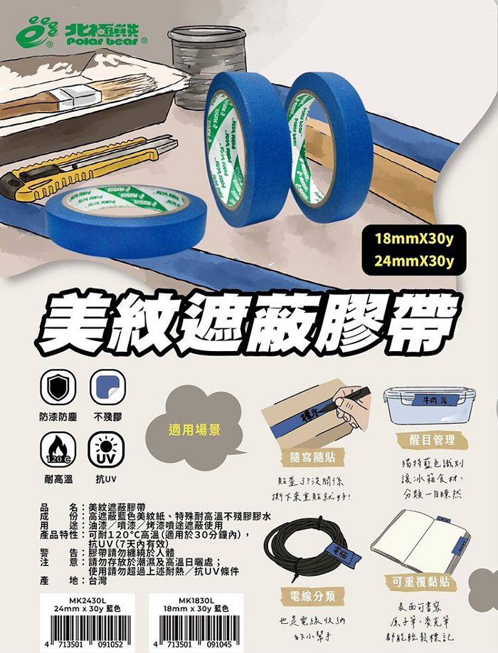 北極熊美紋遮蔽膠帶18mm×30y藍