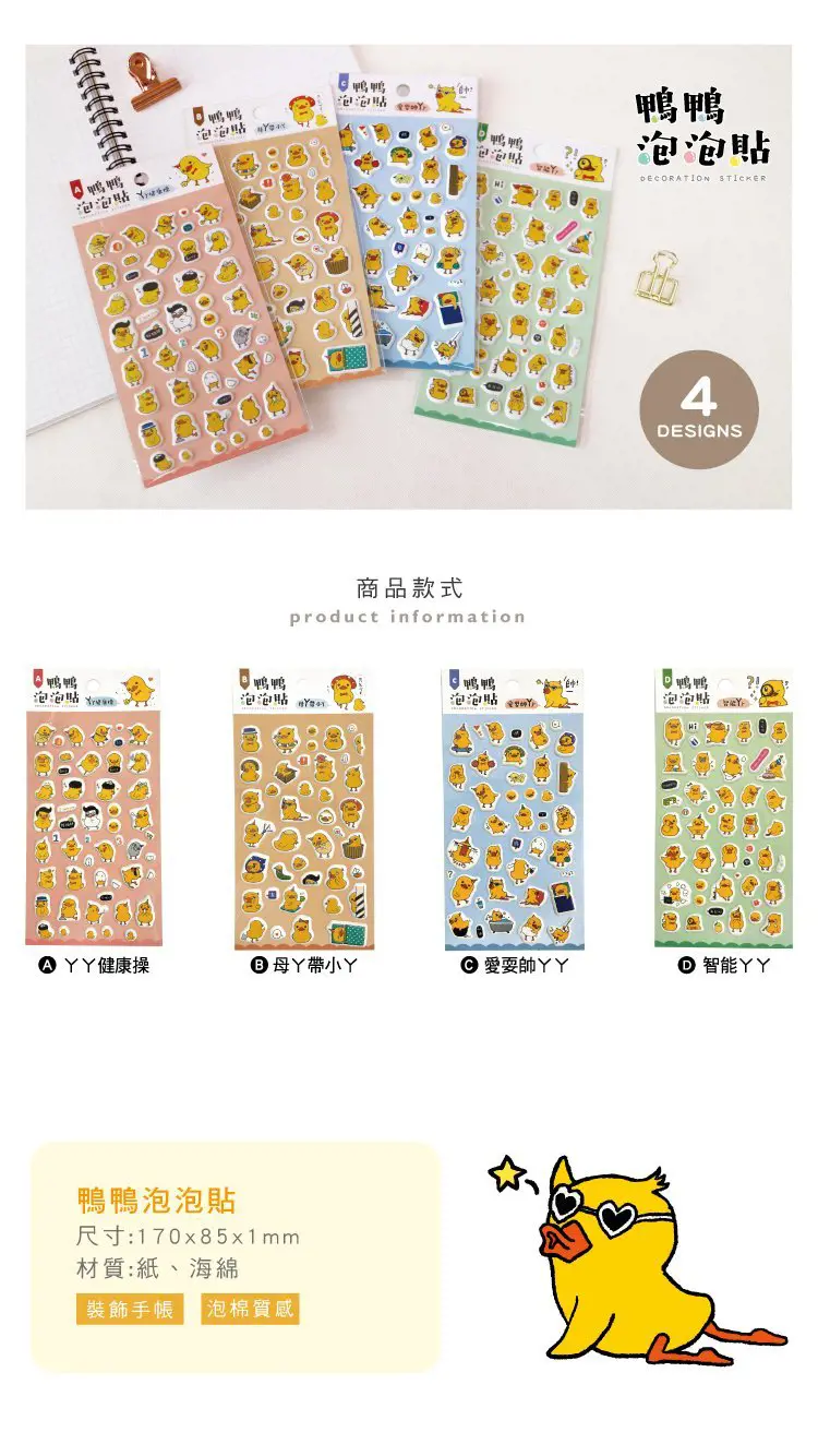 【商品說明】 1.青青 簡單生活系列 CST-403 鴨鴨泡泡貼 2.尺寸:170x85x1mm