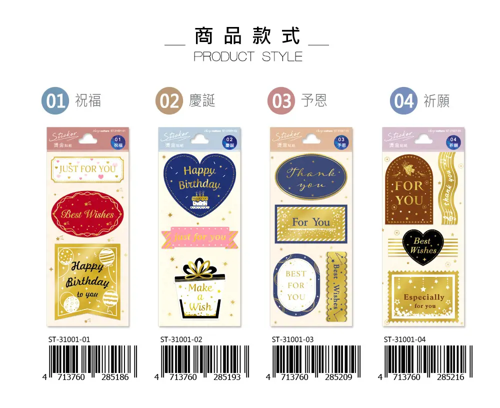 - 每款都有喜洋洋的燙金設計