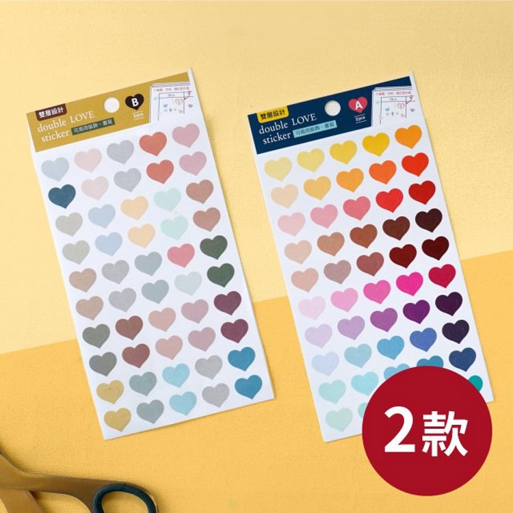 【商品說明】 1. 青青 簡單生活系列 CST-397 雙心裝飾貼2入 (150X90X0.2mm) 2. 嚴選兩種色系可選 3. 材質 : 銅版貼紙 4.適用筆記本、原子筆、 紙袋、玻璃罐...等各種地方喔~