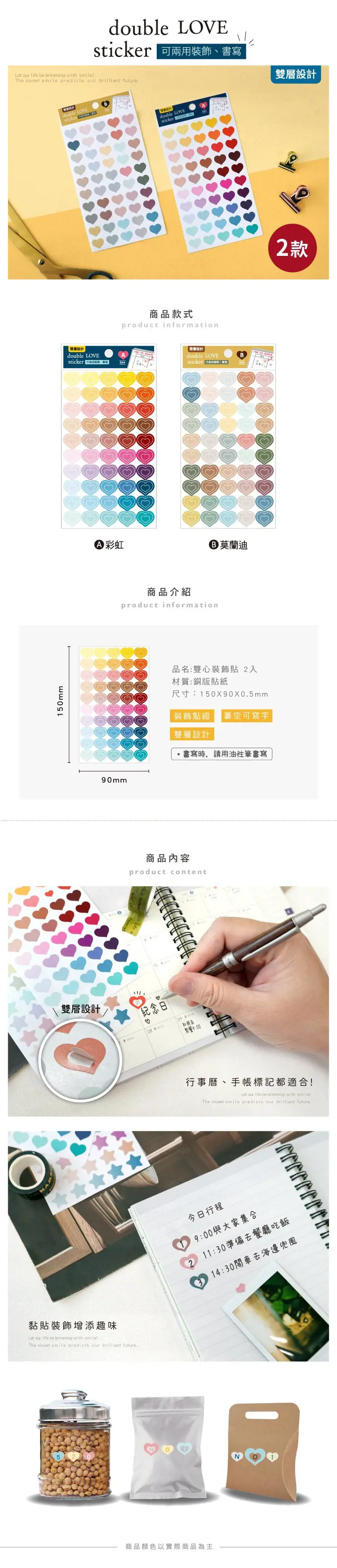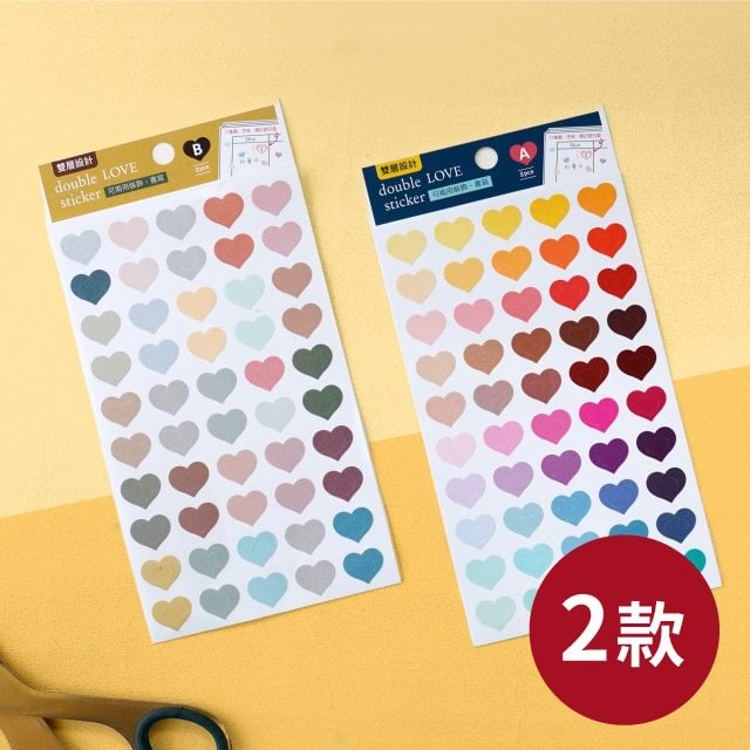 【商品說明】 1. 青青 簡單生活系列    CST-397 雙心裝飾貼2入 (150X90X0.2mm) 2. 嚴選兩種色系可選 3. 材質 : 銅版貼紙 4.適用筆記本、原子筆、 紙袋、玻璃罐...等各種地方喔~