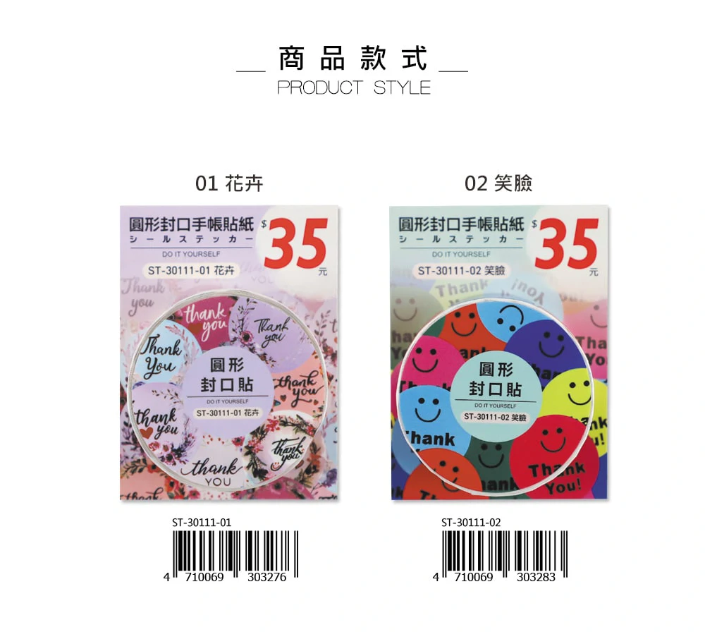 - 尺寸:5.3 x 5.3 x 2.7cm(包裝) / 2.5x 2.5cm(整卷貼紙)