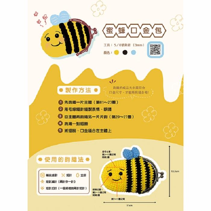 實用鉤織小物:可愛蜜蜂口金包(附超值全材料包套組,含完整教學影片+織圖全解析)