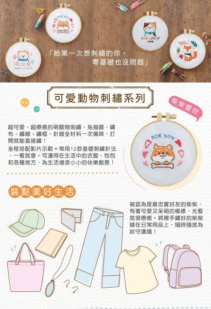 全程搭配影片示範+常用的12款基礎刺繡針法,一看就會。