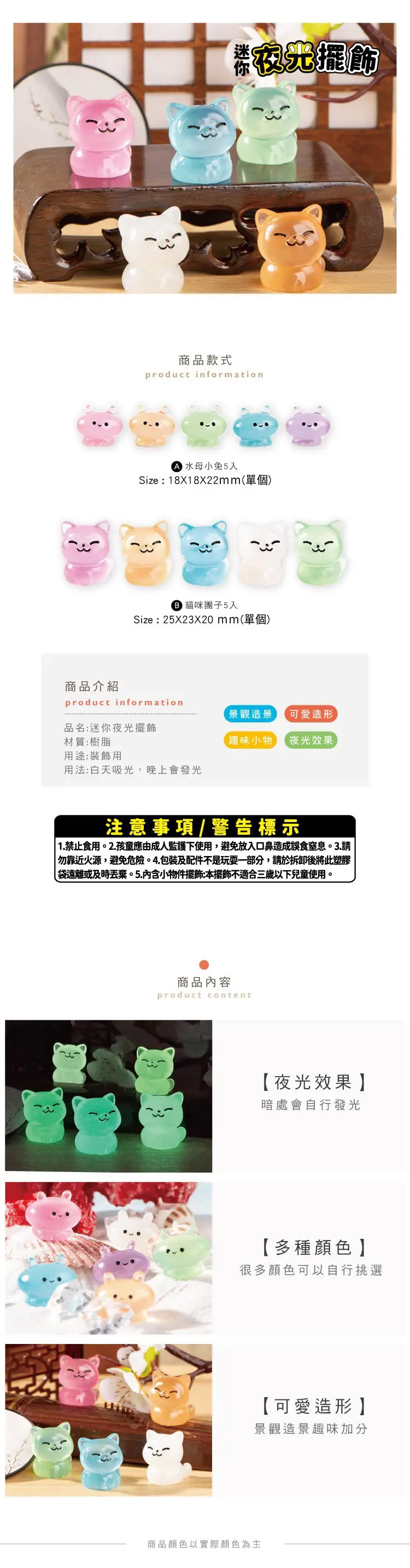 1. 青青 簡單生活系列 CZ-913 迷你夜光擺飾(每款尺寸不同請參照商品介紹)