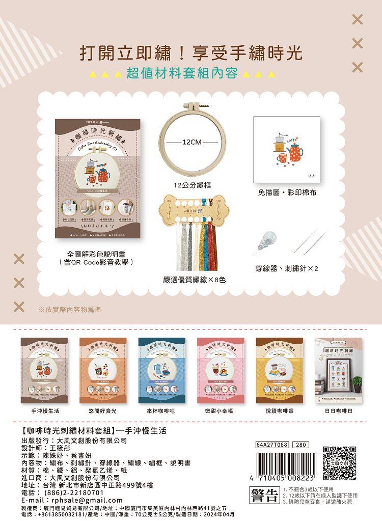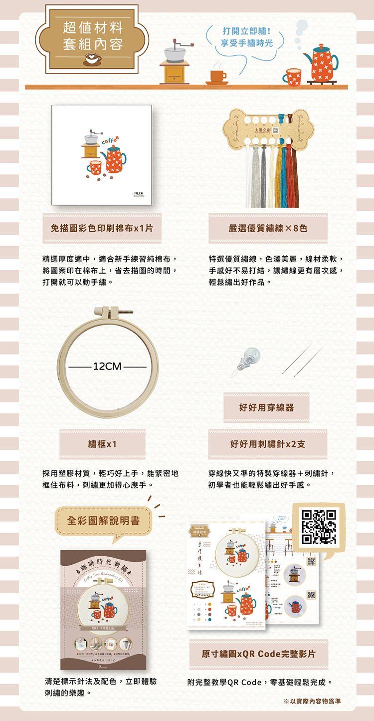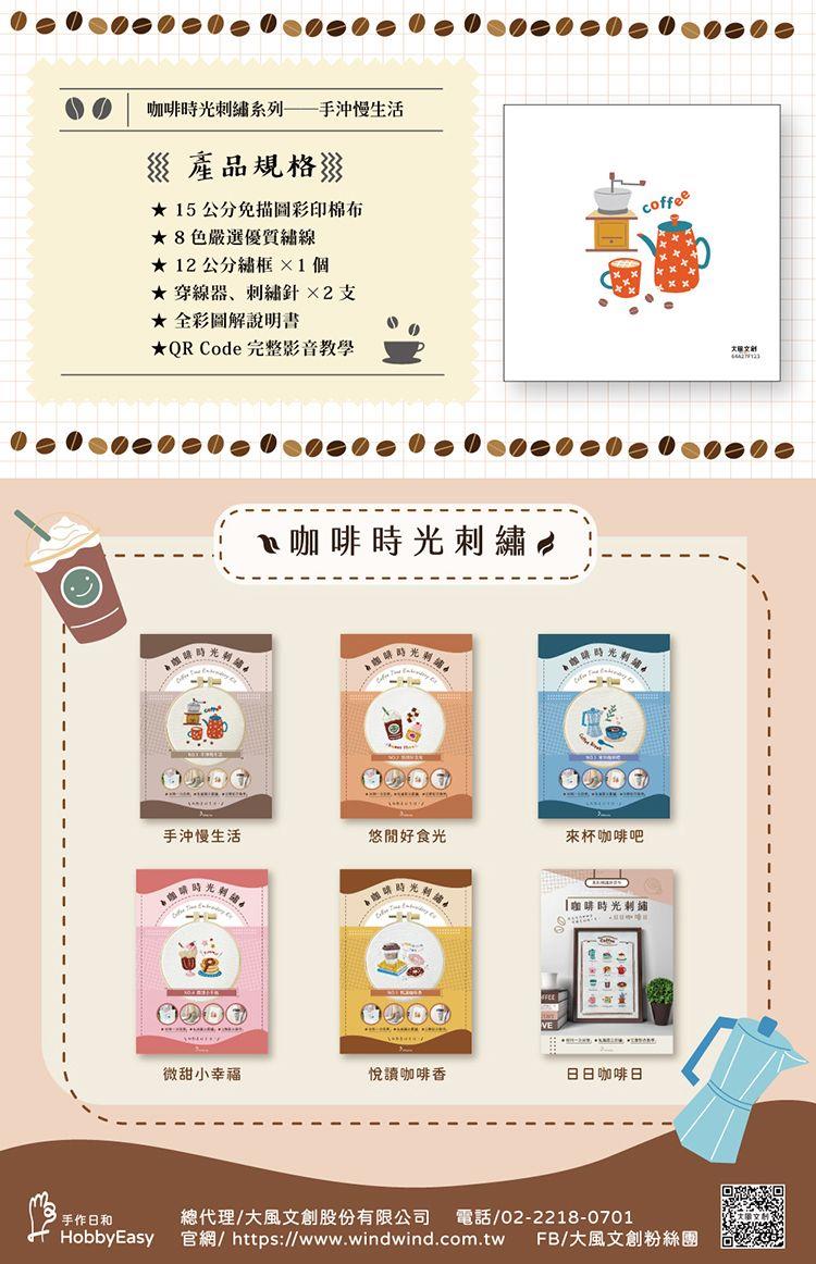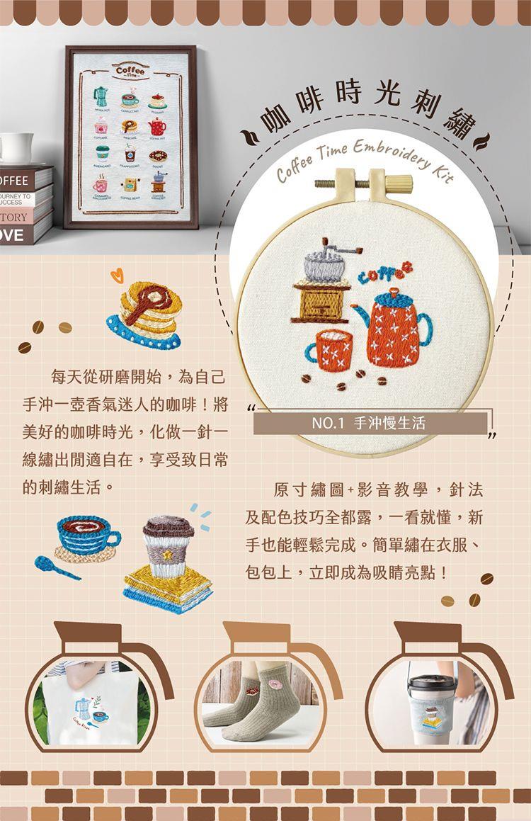 每天從研磨開始,為自己沖一壺香氣迷人的咖啡!將美好的咖啡時光,化做一針一線繡出閒適自在,享受致日常的刺繡生活。